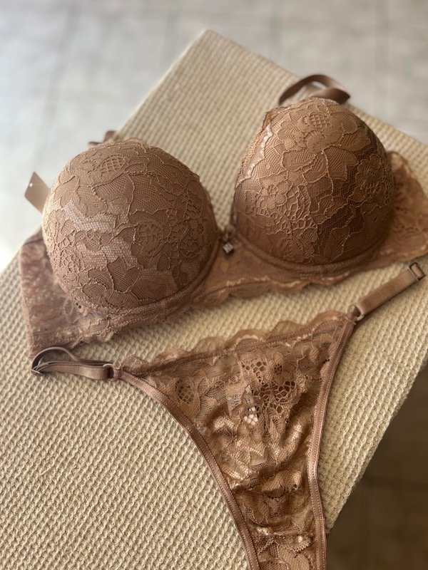 Conjunto de puntilla corpiño Push up soft. Tangaless.